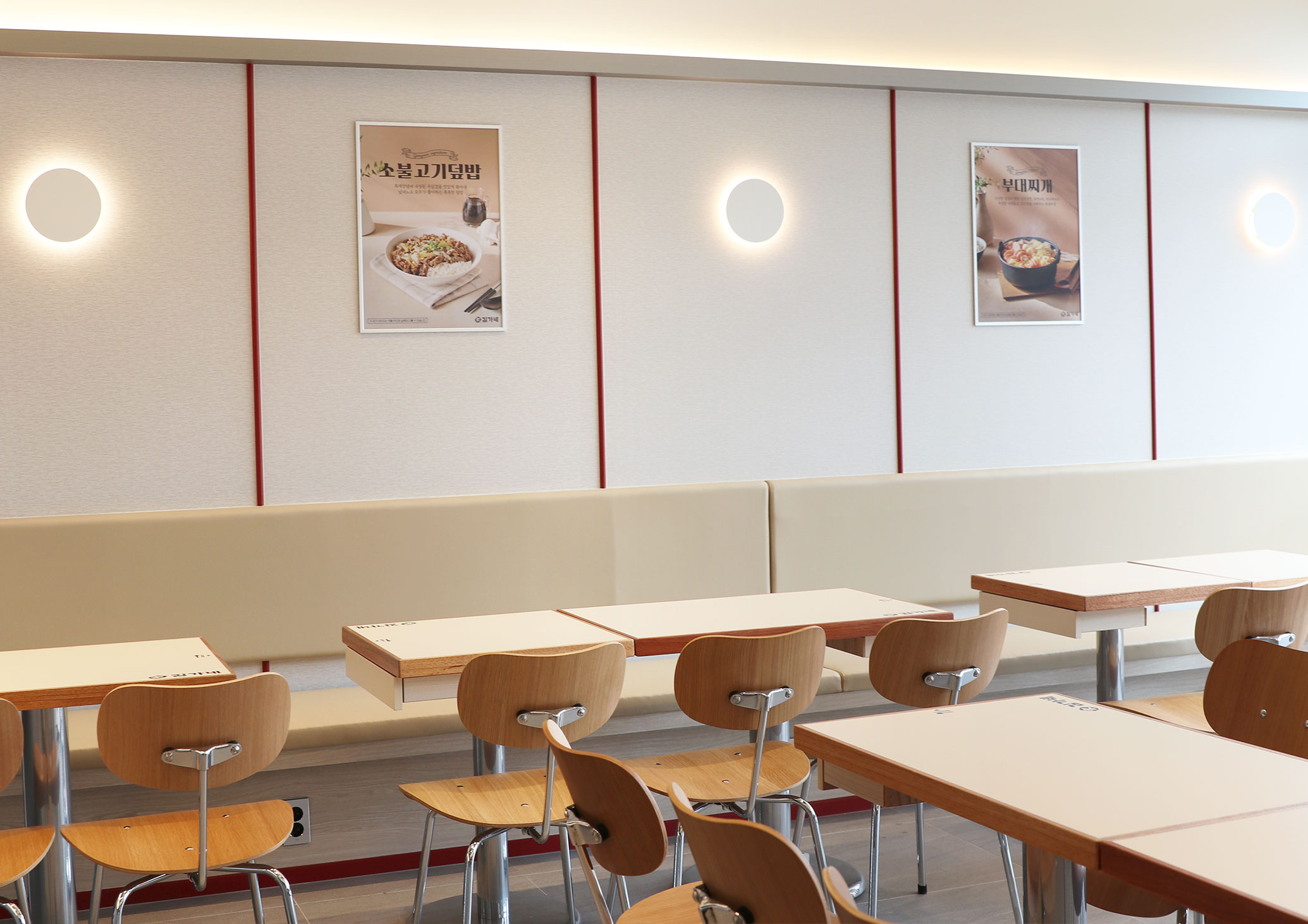 “자연의 마음을 요리에 담다” 라는 슬로건과 부합되는 친환경적인 스타일을 재질로 표현